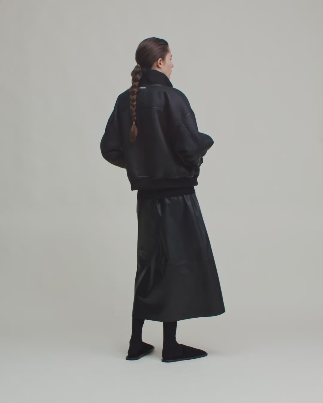 - Reversible, bomber silhouette, relaxed fit, high neck